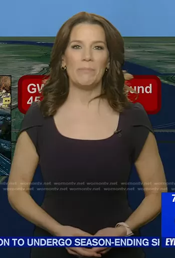 Rachel’s navy scalloped ribbed top on GMA