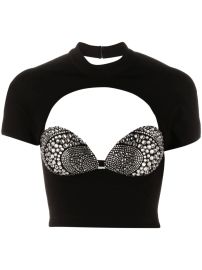 Top: Mussel cup crystal-embellished T-shirt by Area