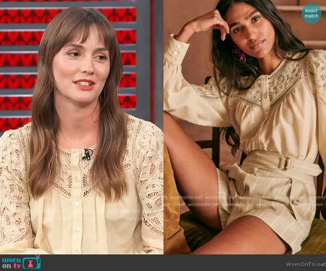 on Access Hollywood on NBC was spotted wearing this lace top on Access Hollywood on Nov 17 2023's episode. 's Top is the Donia Shirt by Sezane.