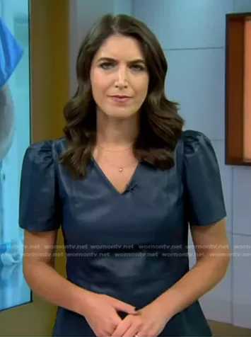 Liz Kreutz on Today on NBC was spotted wearing this teal v-neck peplum leather top on Today on Aug 09 2024's episode. Liz's Top is the Faux Leather Puff Sleeve Peplum Top by Ann Taylor.