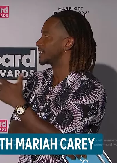 Scott Evans on Access Hollywood on NBC was spotted wearing this purple printed shirt on Access Hollywood on episode 'Heaven Is a Place in Potomac' (8x03) in Nov 2023. Scott's Shirt is the Multicolor Eren Shirt by Officine Generale.