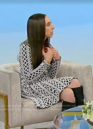 on Tamron Hall Show on ABC was spotted wearing this geometric print zip dress on Tamron Hall Show on Nov 21 2023's episode. 's Dress is the Printed Dress by INC International Concepts.