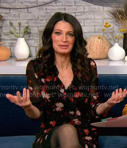 on CBS Mornings on CBS was spotted wearing this Jackie Burns’ black floral dress on CBS Mornings on Nov 22 2023's episode. 's Dress is the Louise Dress by Wilfred at Aritzia .