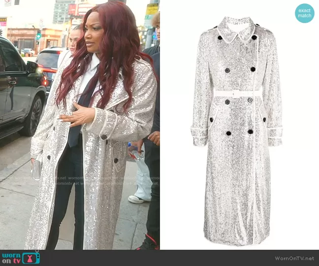 Garcelle Beauvais on The Real Housewives of Beverly Hills on Bravo was spotted wearing this sequin trench coat on The Real Housewives of Beverly Hills on episode 'Sutton-ly Suspicious' (13x05) in Nov 2023. Garcelle's Coat is the Sequin-Embellished Double-Breasted Coat by Self Portrait.