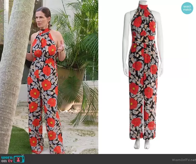 Julia Lemigova (played by Julia Lemigova) on The Real Housewives of Miami on Peacock was spotted wearing this red floral print jumpsuit on The Real Housewives of Miami on episode 'Slam Dunks and Friendship Flunks' (6x04) in Nov 2023. Julia's Jumpsuit is the Silk Floral Print Jumpsuit by Diane von Furstenberg . Julia's Bag is the Lady Bag Cannage Quilt Bag by Christian Dior.