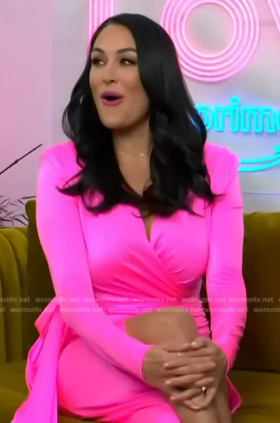 on Access Hollywood on NBC was spotted wearing this pink drape dress on Access Hollywood on Nov 24 2023's episode. 's Dress is the Electric Maxi Dress by Bronx and Banco.