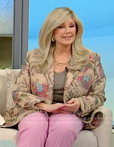 Etro Tree of Life jacquard blazer worn by Morgan Fairchild on Tamron Hall Show