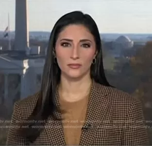on NBC News Daily on NBC was spotted wearing this brown houndstooth blazer on NBC News Daily on Nov 27 2023's episode. 's Jacket is the Relaxed Plaid Blazer by Polo Ralph Lauren.