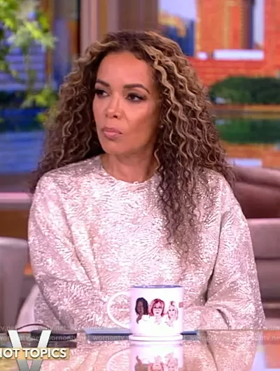 Sunny Hostin on The View on ABC was spotted wearing this silver jacquard top and skirt on The View on Apr 18 2024's episode. Sunny's Top is the Capo Floral Silk Jacquard Blouse by Dries van Noten . Sunny's Skirt is the Separ Floral Jacquard Midi-Skirt by Dries van Noten.
