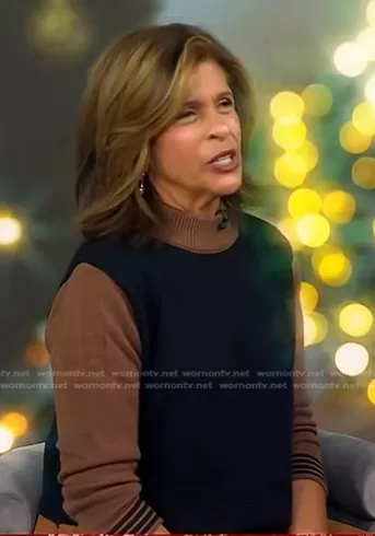 Hoda Kotb on Today on NBC was spotted wearing this black and brown sweater on Today on Jan 01 2024's episode. Hoda's Sweater is the Viola Sweater by En Elly.