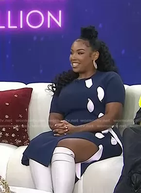 on Today on NBC was spotted wearing this navy ribbed lace-up dress on Today on Nov 30 2023's episode. 's Dress is the Spring/Summer 2021 Collection by PH5.