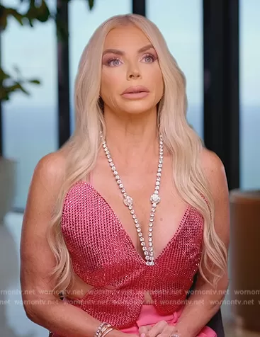 Alexia Echevarria (played by Alexia Echevarria) on The Real Housewives of Miami on Peacock was spotted wearing this pink embellished confessional top on The Real Housewives of Miami on episode 'A Night at the Opera' (6x05) in Dec 2023. Alexia's Top is the Topwear in Rose pink wool by Area.