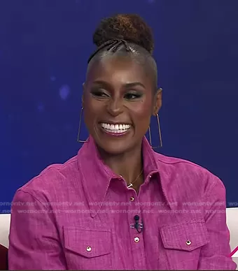 on Today on NBC was spotted wearing this pink shirt on Today on Nov 30 2023's episode. 's Top is the Western Body Blouse by Sergio Hudson.