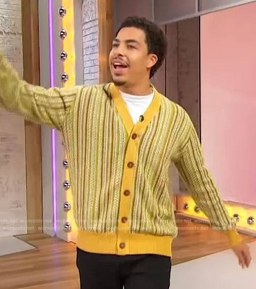on Sherri on FOX was spotted wearing this yellow stripe cardigan on Sherri on Dec 01 2023's episode. 's Sweater is the Notch Cardigan by Notch Cardigan.