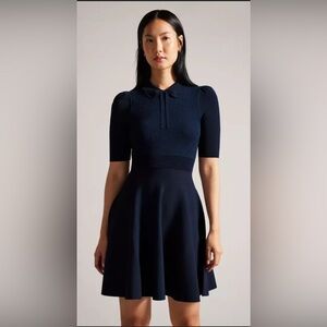Ted Baker Hillder Mixed Stitch Knit Dress in Dark Blue worn by Chloe Melas on NBC News Daily