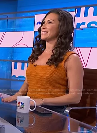 Vince Crochet Square Tank in Burnt Orange worn by Stephanie Mansour on NBC News Daily
