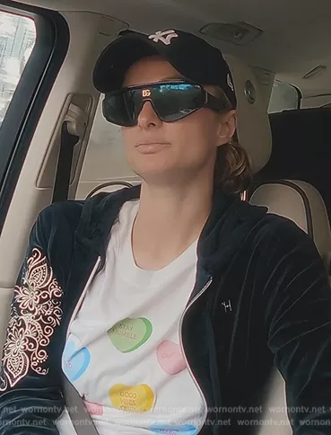 Paris Hilton on Paris in Love on Peacock was spotted wearing this black visor sunglasses on Paris in Love on episode 'Big Little Secret' (2x01) in Dec 2023. Paris's Top is the Sweetheart Top by Sub Urban Riot . Paris's Sunglasses is the Geometric Rectangle Propionate Sunglasses by Dolce and Gabbana.