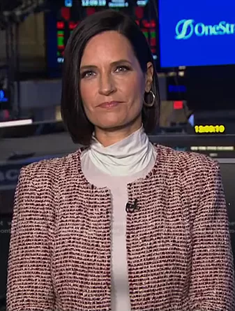 on NBC News Daily on NBC was spotted wearing this red tweed jacket on NBC News Daily on Dec 04 2023's episode. 's Jacket is the Riona Jacket In Red/White by Iro.