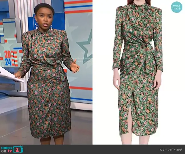 Sandro Lueur Floral Long Sleeve Midi Dress worn by Zinhle Essamuah on NBC News Daily