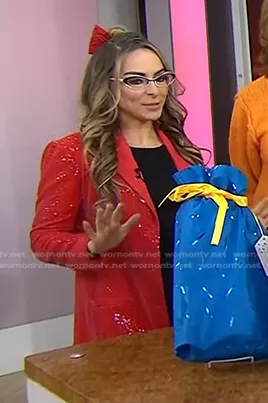 on Today on NBC was spotted wearing this red sequin blazer dress on Today on Dec 05 2023's episode. 's Dress is the Sequin Blazer Dress by Maeve.