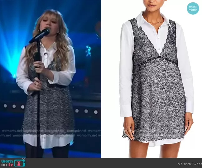 Kelly Clarkson on The Kelly Clarkson Show on NBC was spotted wearing this lace layered dress on The Kelly Clarkson Show on Dec 06 2023's episode. Kelly's Dress is the Catalina Lace Metallic Mixed Media Dress by Cinq a Sept.