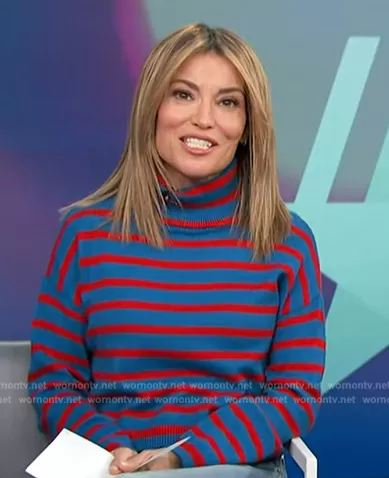 Kit Hoover on Access Hollywood on NBC was spotted wearing this blue stripe sweater on Access Hollywood on Dec 07 2023's episode. Kit's Sweater is the Turtleneck Sweater in Bluebell by Aqua . Kit's Pants is the Taylor Cropped High Rise Wide-Leg Jeans by Veronica Beard.