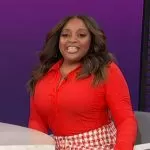 Amanda Kloots on The Talk on CBS was spotted wearing this red checked tweed outfit on The Talk on Dec 07 2023's episode. Amanda's Top is the Claudine Top in Red Ivory Boucle by Cara Cara . Amanda's Jacket is the Ross Blazer in Red Ivory Boucle by Cara Cara . Amanda's Skirt is the Bonjour Skirt in Red Ivory Boucle by Cara Cara.