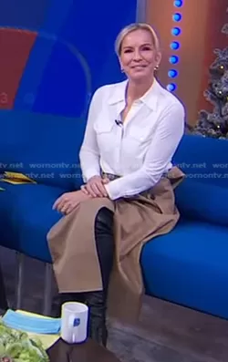 Dr. Jennifer Ashton on Good Morning America on ABC was spotted wearing this white shirt and beige skirt on Good Morning America on Dec 07 2023's episode. Jennifer's Top is the Aveline Patch-Pocket Shirt by Nili Lotan . Jennifer's Skirt is the Pleat-Detailing Belted-Waist Skirt by Sacai . Jennifer's Shoes is the Trap Tall Boots by Proenza Schouler.