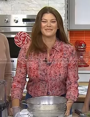 on Today on NBC was spotted wearing this pink printed blouse on Today on Dec 08 2023's episode. 's Top is the Chika Dyed Silk Blouse in Sweetpea Bundle by Altuzarra.