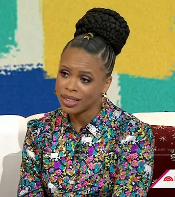 on Today on NBC was spotted wearing this multicolor goat print dress on Today on Dec 08 2023's episode. 's Dress is the Pleated Midi Dress in Grazing Goats Print by J. Crew.