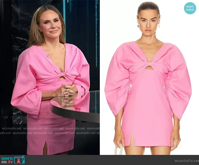 Keltie Knight on E! News on E! was spotted wearing this pink puff sleeve mini dress on E! News on Dec 08 2023's episode. Keltie's Dress is the Dahlia Dress by Cult Gaia.