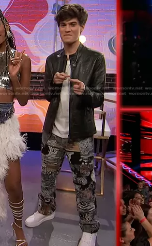on The Voice on NBC was spotted wearing this patchwork pants on The Voice on Dec 06 2023's episode. 's Pants is the Paneled Blanket Pants by MNML.