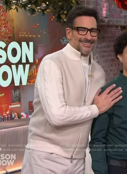 Eleventy Cable-knit wool bomber jacket worn by Lawrence Zarian on The Kelly Clarkson Show