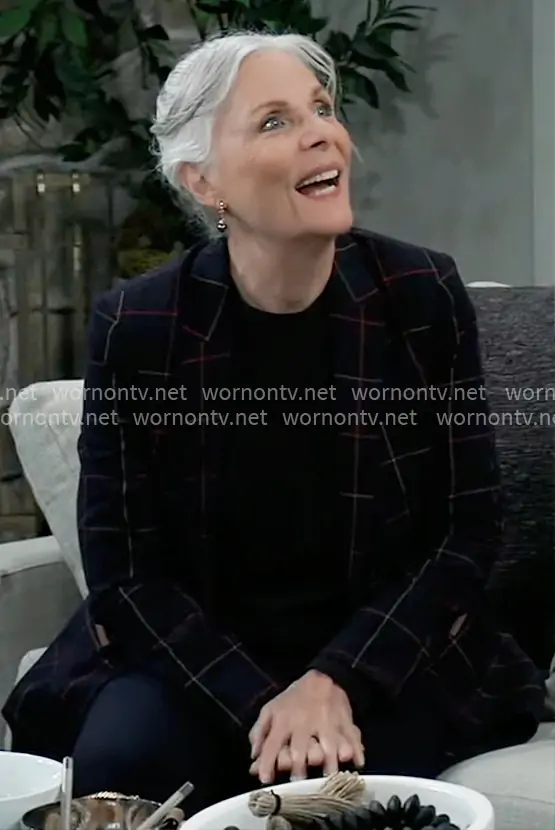 Tracy Quartermaine (played by Jane Elliot) on General Hospital on ABC was spotted wearing this checked suit on General Hospital on Jan 16 2026's episode. Tracy's Jacket is the Elbow-Patch Plaid Jacket by Tommy Hilfiger .