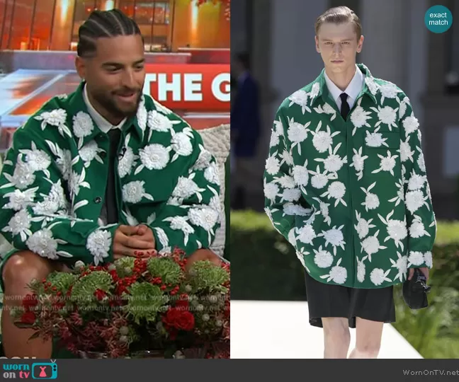 on The Kelly Clarkson Show on NBC was spotted wearing this green floral embroidered jacket on The Kelly Clarkson Show on Dec 12 2023's episode. 's Jacket is the SS 2024 Collection by Valentino.