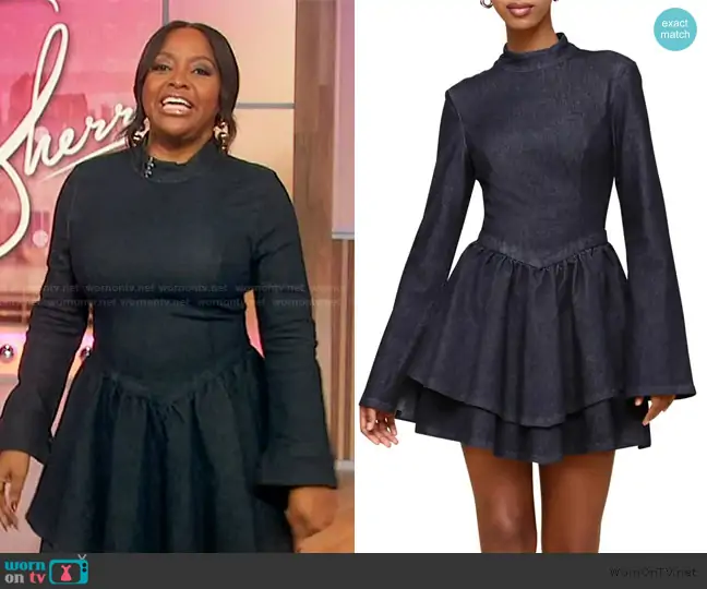 on Sherri on FOX was spotted wearing this purple ribbed sweater and leather skirt on Sherri on Dec 13 2023's episode. 's Sweater is the Light seamless silk ribbed high neck sweater by Bottega Veneta . 's Skirt is the Leather Midi Skirt by Bottega Veneta.