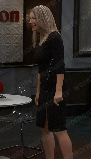 Nina's fashion choices on GH are always a subject of fascination, and her black zip detail dress is no exception. This piece, a ruched zipper sheath dress by Calvin Klein, reimagines the classic little black dress with its distinctive features. The 3/4 length sleeves add a touch of elegance, while the zipper extending from the side waist down to the slit at the hem introduces an unexpected edge. This design element not only adds visual interest but also allows for a customizable slit height, offering a blend of sophistication and boldness. Nina's ability to pull off this dress with aplomb speaks to her character's complex personality – one that is both powerful and stylish. This dress, with its unique blend of classic style and modern detailing, serves as a sartorial inspiration for viewers who appreciate fashion that makes a statement while maintaining an air of timeless elegance.