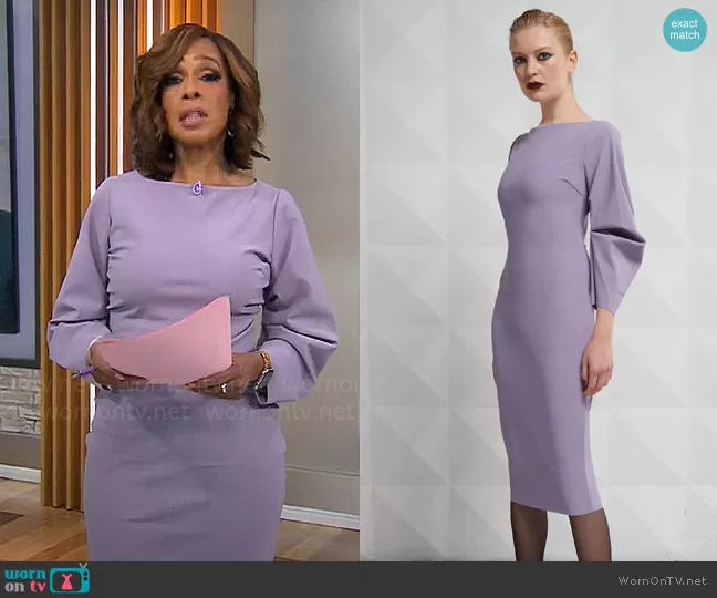Gayle King on CBS Mornings on CBS was spotted wearing this light purple statement sleeve sheath dress on CBS Mornings on Aug 20 2025's episode. Gayle's Dress is the Carlyn Dress in Wisteria by Chiara Boni La Petite Robe .