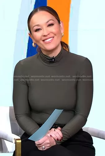 Eva Pilgrim on Good Morning America on ABC was spotted wearing this grey turtleneck top on Good Morning America on Dec 14 2023's episode.