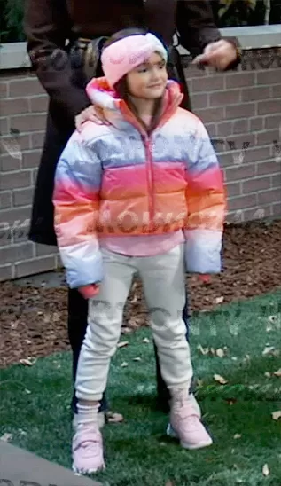 Donna Corinthos (played by Scarlett Spears) on General Hospital on ABC was spotted wearing this ombre puffer jacket on General Hospital on Dec 14 2023's episode. 's Jacket is the Girls' Puffer Jacket in Pink by All In Motion at Target . 's Headband is the Girls Knit Headband by H&M.