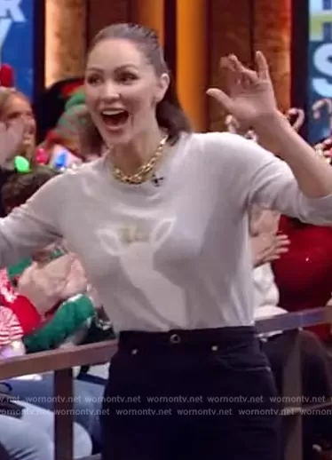 on Live with Kelly and Mark on Disney ABC Home Entertainment was spotted wearing this gray reindeer sweater on Live with Kelly and Mark on Dec 15 2023's episode. 's Sweater is the Crewneck Pullover in Reindeer Intarsia by Talbots.