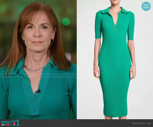 on NBC News Daily on NBC was spotted wearing this green knit collar ribbed dress on NBC News Daily on Dec 15 2023's episode. 's Dress is the Adrian Mixed Media Dress by A.L.C..