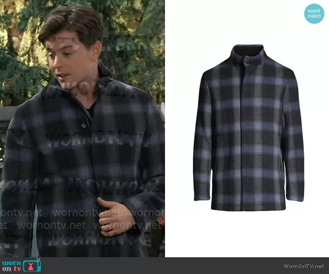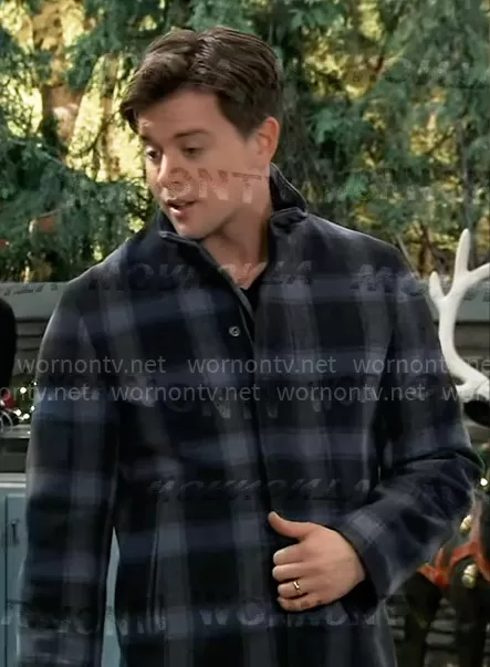 Michael's plaid jacket, the Clarence plaid wool jacket by Theory, as seen on GH, is a masterclass in refined, contemporary menswear. The subtle interplay of blue and black in the plaid pattern exudes a sense of understated sophistication, making it a versatile piece for various settings. Crafted from a luxurious wool blend, this jacket ensures both comfort and style, tailored to a slim-straight fit that enhances its modern appeal. The stand collar and long sleeves contribute to its sleek profile, while the concealed zip front with snap placket adds a clean, streamlined look. Additionally, the waist welt pockets offer both functionality and a touch of classic design. This jacket is not merely a wardrobe choice for Michael; it's an embodiment of his character's evolution and maturation, reflecting a blend of traditional style with a modern twist. In the dynamic world of soap opera fashion, Michael's plaid jacket stands out as a symbol of contemporary elegance, appealing to viewers who appreciate the fusion of classic patterns with modern tailoring.