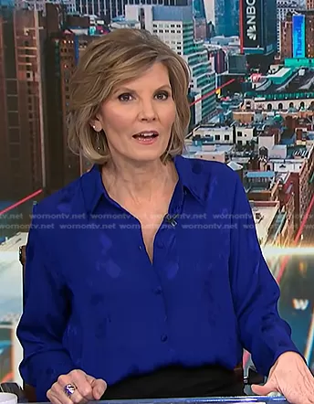 Kate Snow on NBC News Daily on NBC was spotted wearing this blue floral button down shirt on NBC News Daily on Dec 09 2025's episode. Kate's Top is the Floral Jacquard Shirt by Zara.