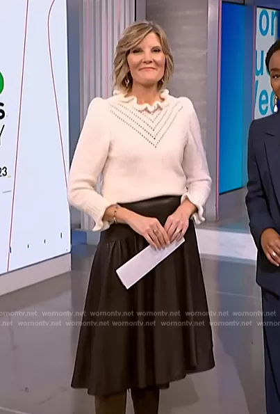 Kate Snow on NBC News Daily on NBC was spotted wearing this brown leather skirt on NBC News Daily on Dec 18 2023's episode. Kate's Skirt is the Faux Leather Wrap Skirt by Rebecca Taylor.