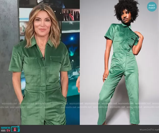 Kit Hoover on Access Hollywood on NBC was spotted wearing this green corduroy utility jumpsuit on Access Hollywood on May 20 2025's episode. Kit's Jumpsuit is the Worker Corduroy Jumpsuit by Rivet Utility.