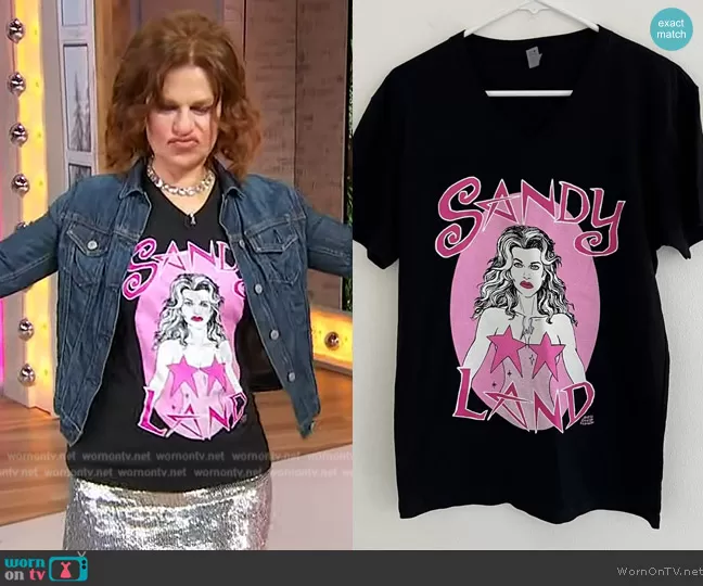 on Sherri on FOX was spotted wearing this Sandy Land print tee on Sherri on Dec 19 2023's episode. 's Top is the Sandy Land Graphic Tee by Marisa Acocella.