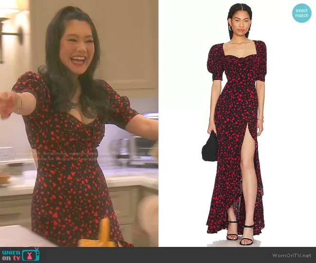 Crystal Kung Minkoff on The Real Housewives of Beverly Hills on Bravo was spotted wearing this black and red heart print dress on The Real Housewives of Beverly Hills on episode 'A Feisty Fiesta' (13x09) in Dec 2023. Crystal's Dress is the Morgan Dress in Kimmy Heart by Lovers & Friends.