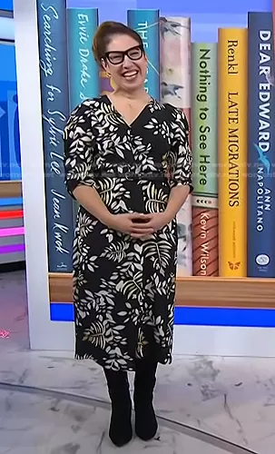 on Today on NBC was spotted wearing this black floral dress on Today on Dec 22 2023's episode. 's Dress is the Crissy Leaf Print Wrap Midi Dress by Ba&Sh.