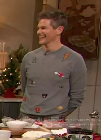 Gucci Gray Embroidered Sweater worn by David Burtka on The Drew Barrymore Show